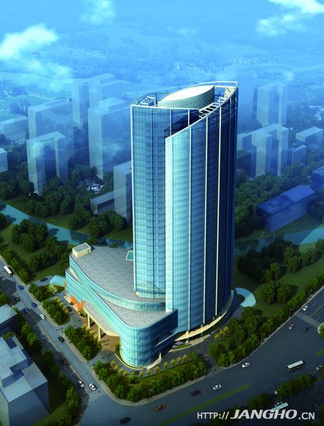 \r\n 工程用地北面为16米宽东锦江街,南面紧邻蓝光香槟广场,东侧为40米宽红星路步行街,处在城市中心区和商业重心点,位置极其优越,市政管网配套齐全。总净用地面积6215.36平方米;总建筑面积94202.0平方米,其中,地下建筑面积15237.1平方米,地上建筑面积78964.9平方米。裙房檐口标高为29.4米,塔楼檐口标高为152.2米。幕墙类型主要为单元式玻璃幕墙、弧形玻璃幕墙、悬挂穿孔铝板、玻璃栏板、金属穿孔板幕墙、金属波纹板、框架式玻璃幕墙等。
