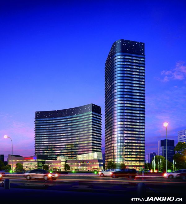 \r\n 工程由A、B两栋塔楼和裙楼组成,占地面积12828.53 平方米,建筑规模158009.52平方米,幕墙面积59000 平方米。A座建筑高度为177.45米,共46层,B座建筑高度99.75米,共25层,裙楼4层。A座1-15层为商业和酒店,16-39层为酒店公寓,40-46层为办公用房,16、32层为避难层;B座1层为商业和办公大堂,2层为餐厅、厨房,3-25层为办公楼。本工程主要幕墙形式包括单元体幕墙、点玻幕墙、石材幕墙、采光顶等。